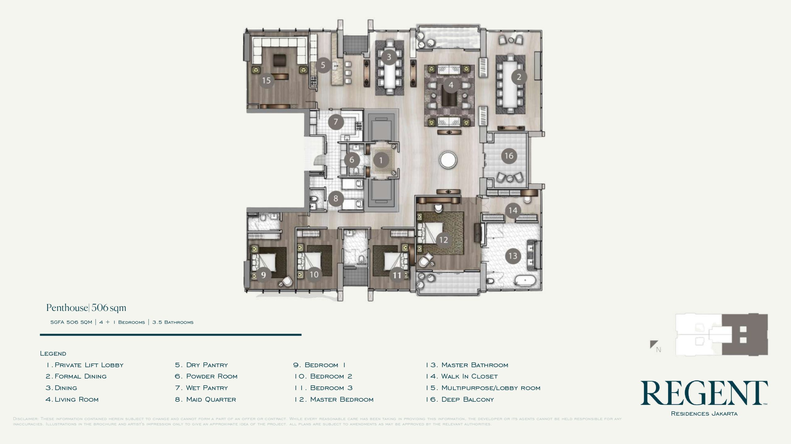 Untuk Di Jakarta selain Hotel, Regent juga menawarkan hunian apartemen dengan konsep Private Residence dengan hanya memiliki