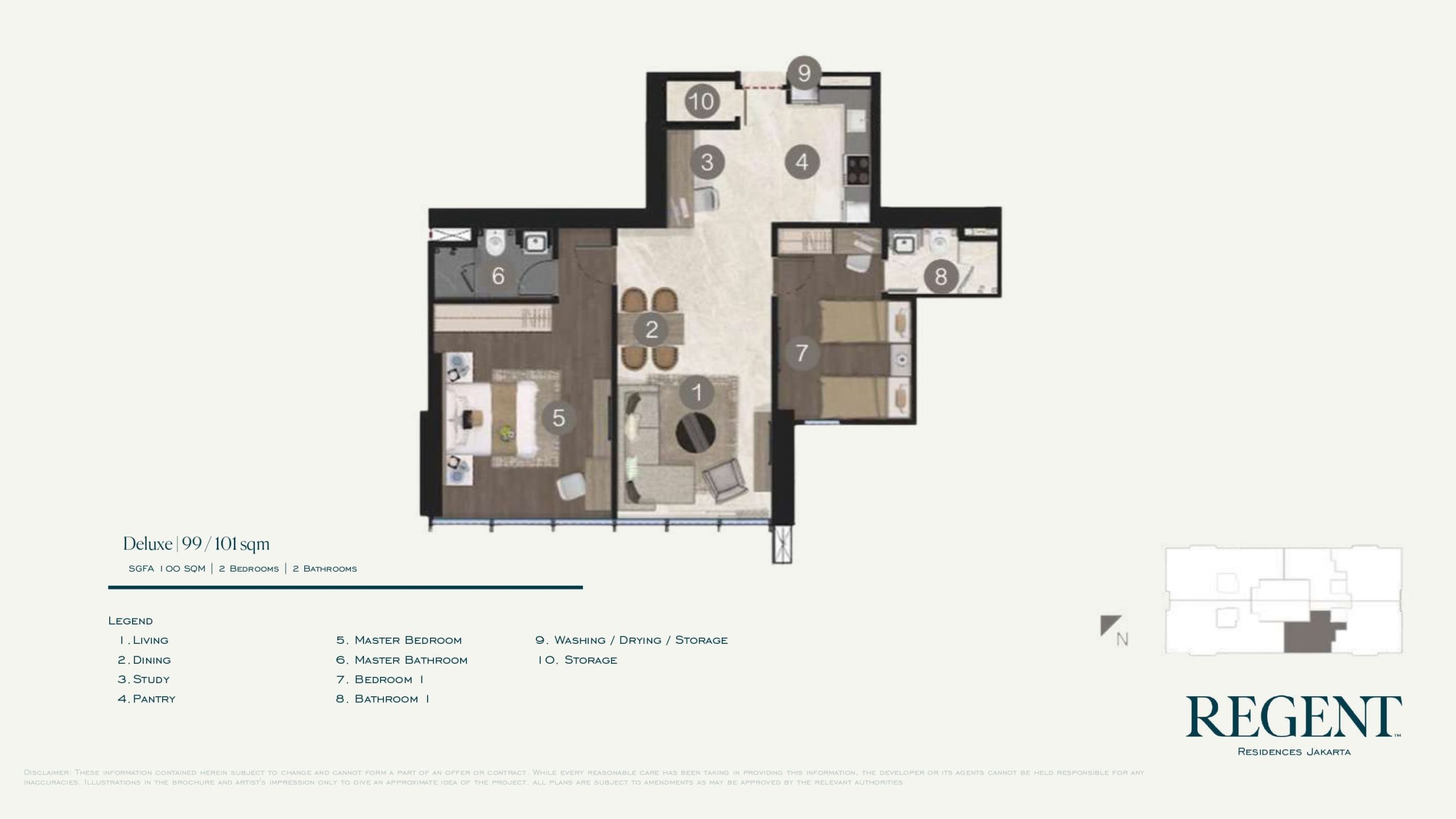 Setiap unit di Regent di desain Mewah, Luas dan Berkualitas mulai dari 2BR sampai Penthouse